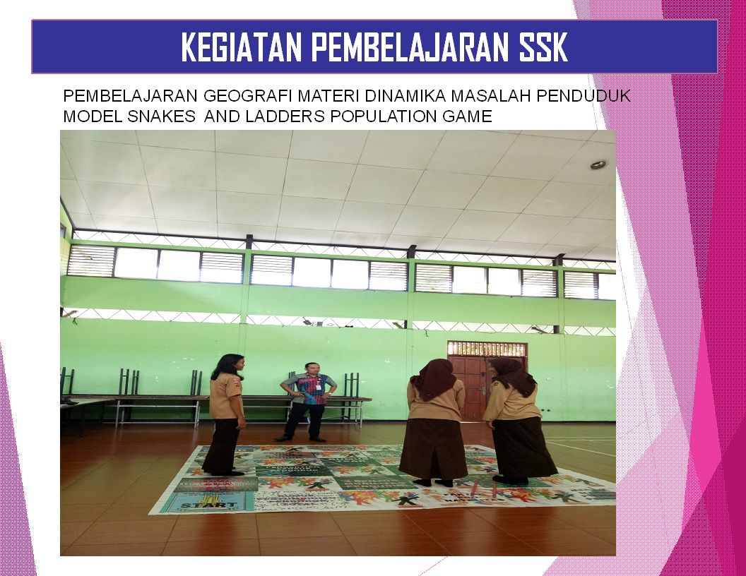 SMA Negeri 6 Semarang merupakan salah satu sekolah menengah atas yang berbasis kependudukan di Provinsi Jawa Tengah. Sekolah ini memiliki fasilitas dan sarana prasarana yang memadai. Siswa yang bersekolah di sini merupakan warga sekitar sekolah dengan kemampuan belajar dan motivasi yang berbeda beda. Berkaitan dengan SMA N 6 Semarang sebagai Sekolah Siaga Kependudukan di Provinsi Jawa Tengah. Penulis mencoba untuk menerapkan model pembelajaran dengan menggunakan permainan ular tangga kependudukan ( Snake and Ladder Population Game) pada materi Dinamika Masalah kependudukan di kelas XI peminatan IPS.